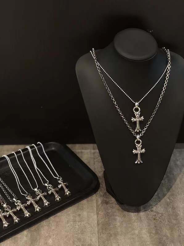 Chrom* Hearts Double-Layer Cross Necklace featuring a newly upgraded design inspired by the classic style worn by top influencers.