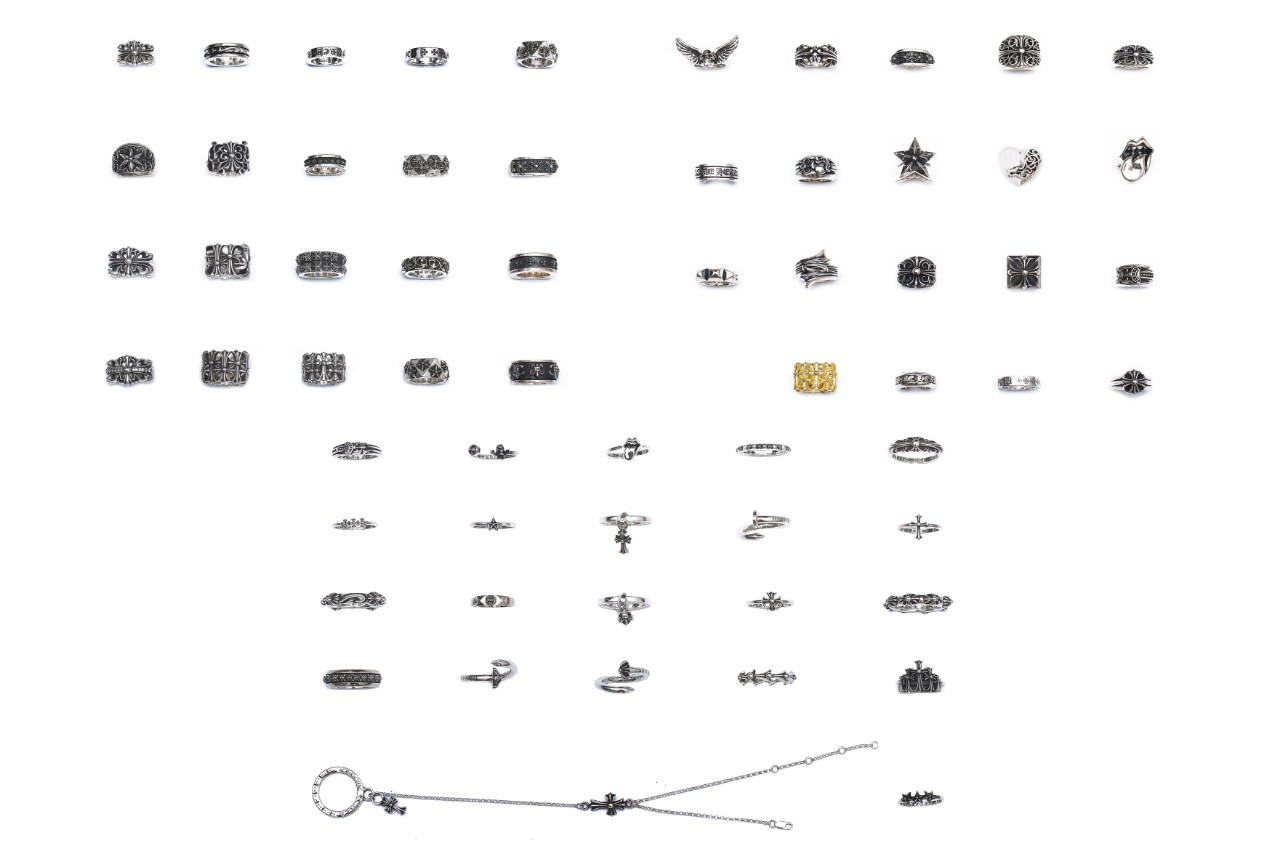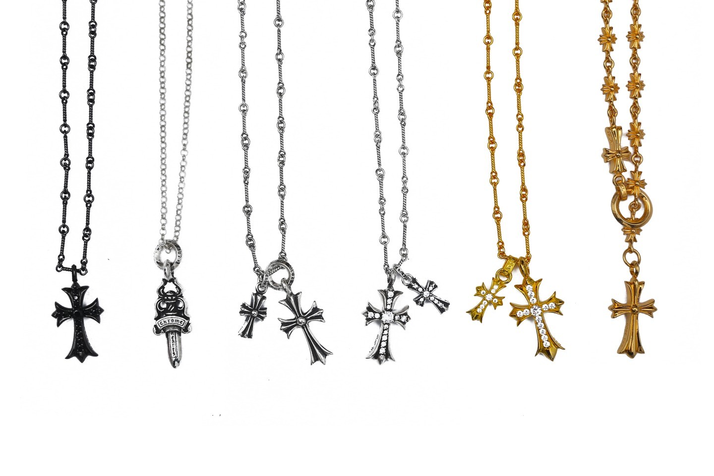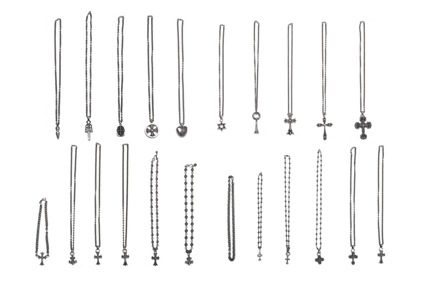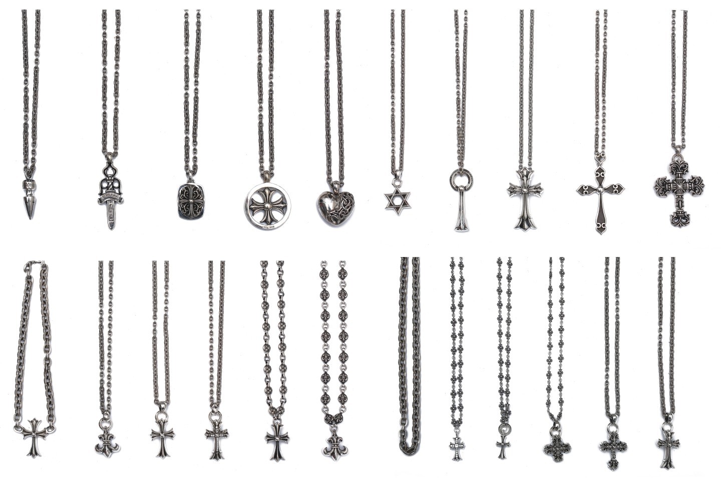 Chrom* Hearts-inspired necklace, bracelet, ring, and bangle collection crafted from premium sterling silver with an antique finish.