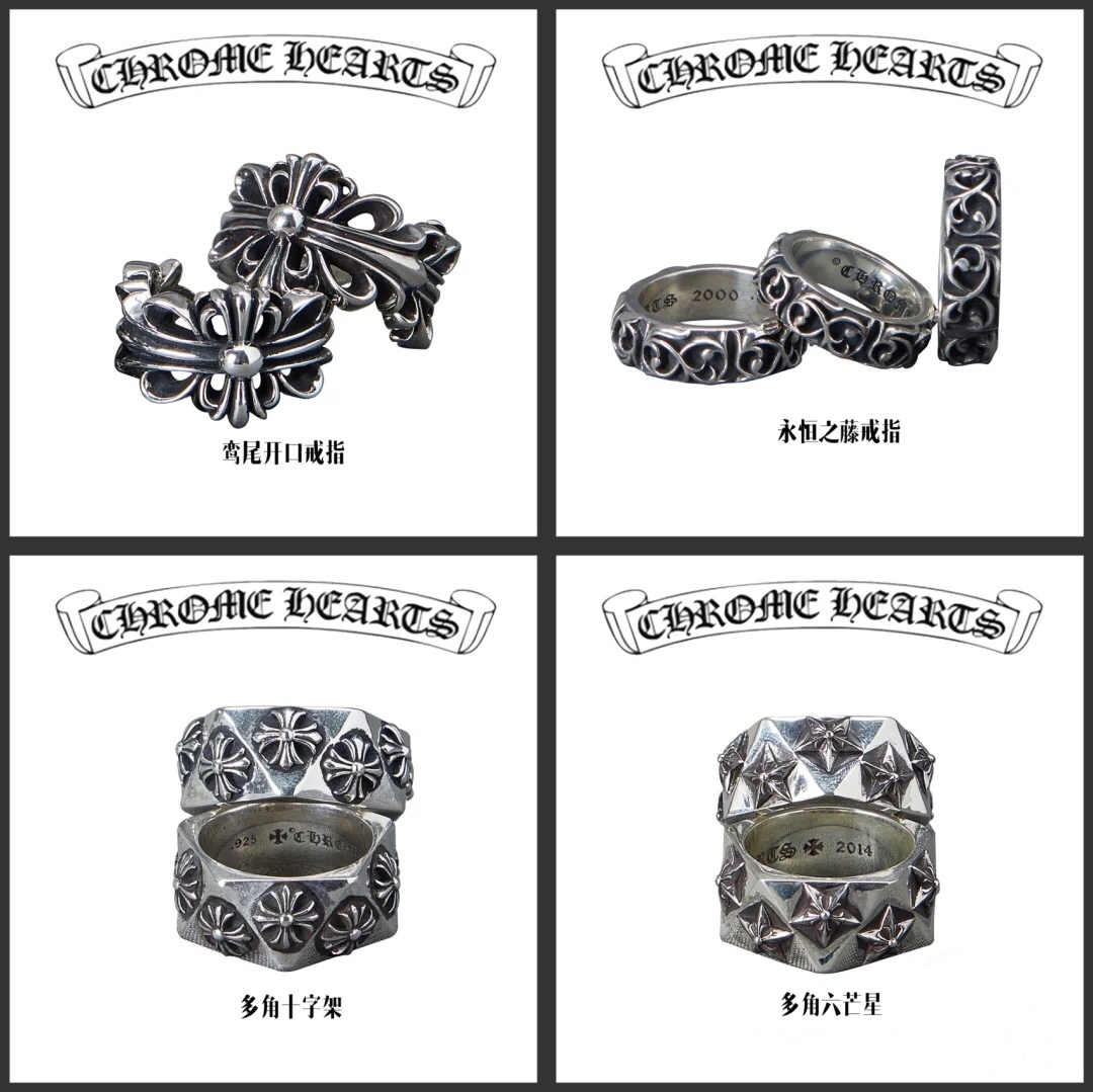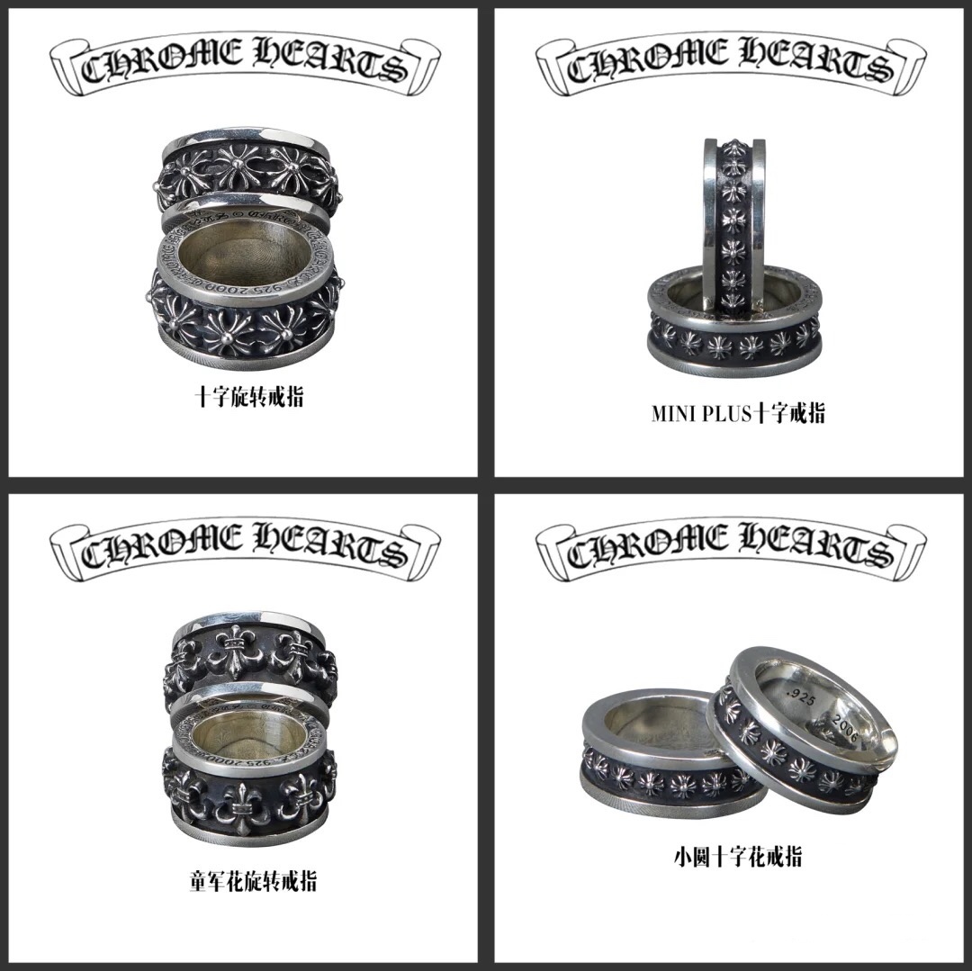 Premium sterling silver rings inspired by Chrom* Hearts design, featuring an antique finish for a distinctive vintage look. Each piece is meticulously handcrafted using high-quality replication techniques to ensure exceptional detail and durability.