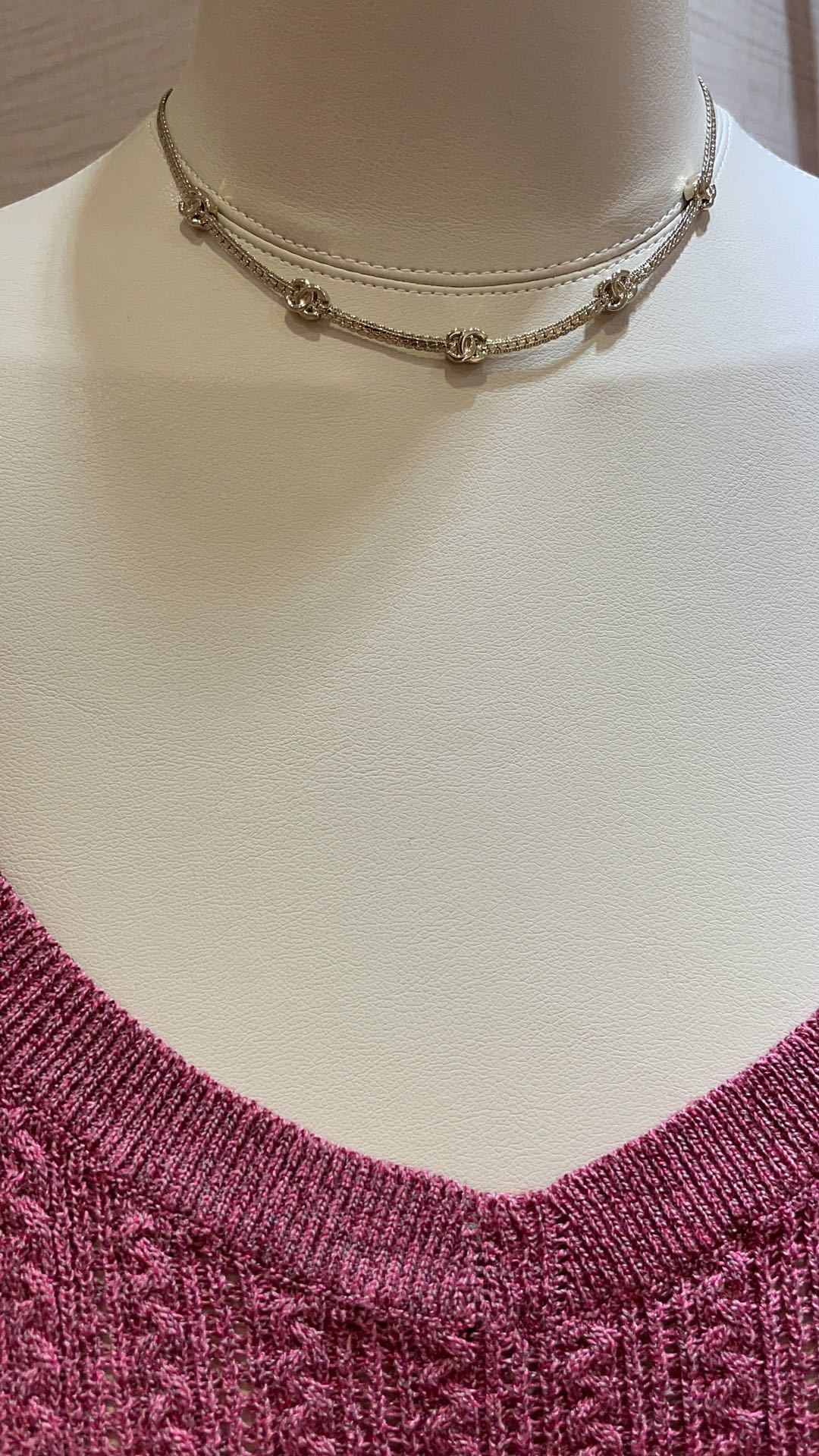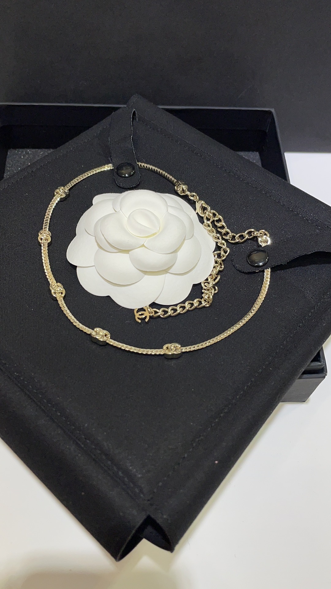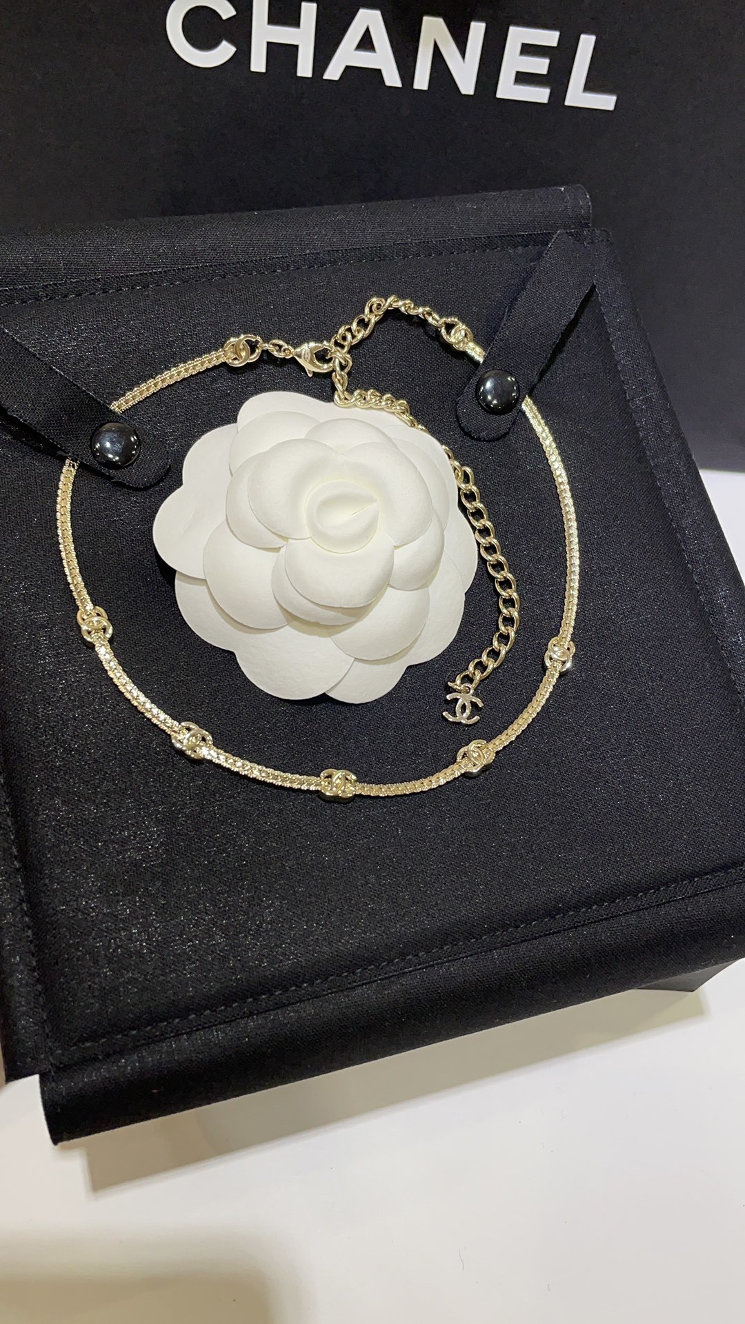 24B ดับเบิ้ล ซี Logo Snake Chain Choker สีทองคําอ่อน มีโซ่งูอ่อนโยนประดับด้วย 5 ลักษณะ C แบบคลาสสิก