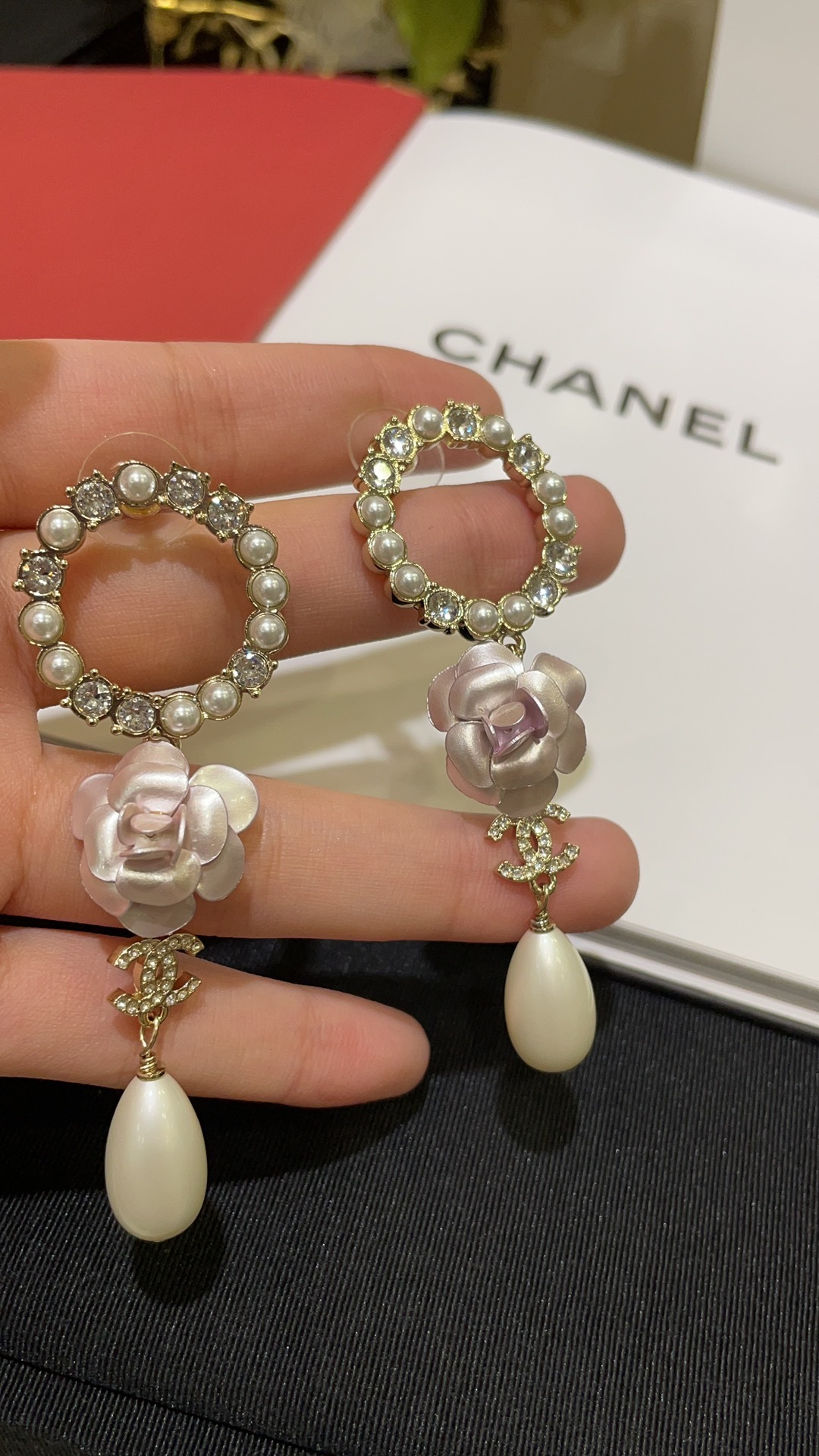 สินค้าใหม่ปี 2023C: จี้ ดับเบิ้ล ซี สีทองพร้อมไข่มุก, ต่างหูไข่มุก Camellia สีชมพูอ่อน