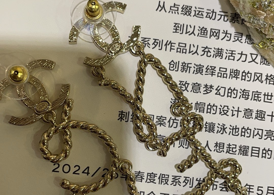 ✨ 25C สไตล์ใหม่: หนังสือจดหมายทอง "C" พร้อมการออกแบบ Twist & ดับเบิ้ล ซีC Pendant earrings