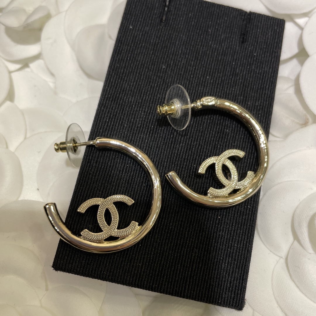 22P คลาสสิคใหม่กลมใหญ่ CC ทองเหลือง Hoop Plissed ดับเบิ้ล ซี หูประดับมีการออกแบบที่ไม่มีเวลาและอลังการ ที่เพิ่มความโดดเด่นลักษณะหน้าของคุณ