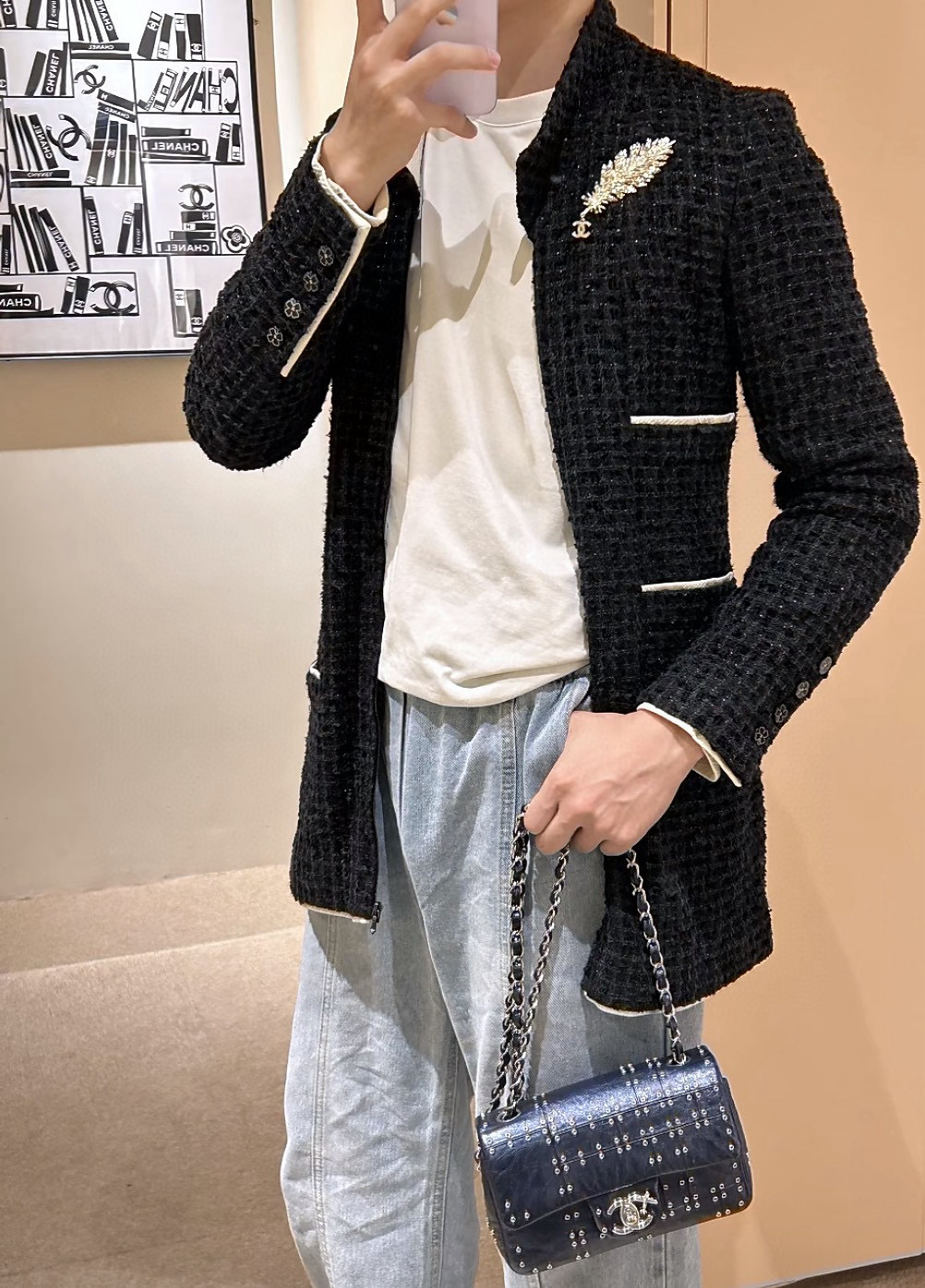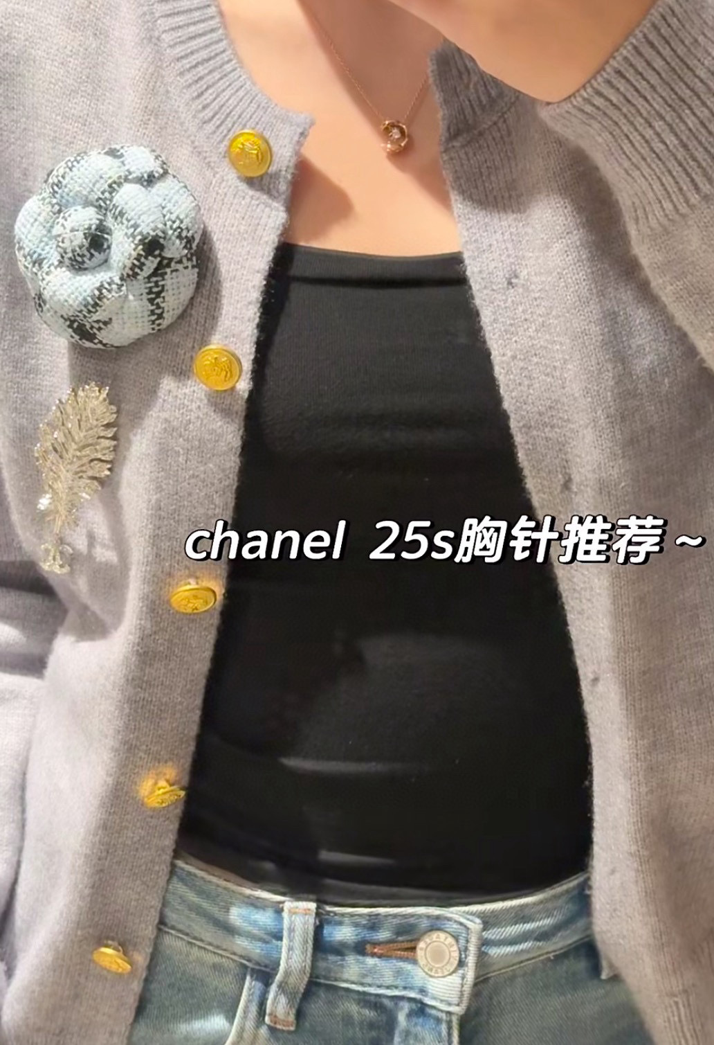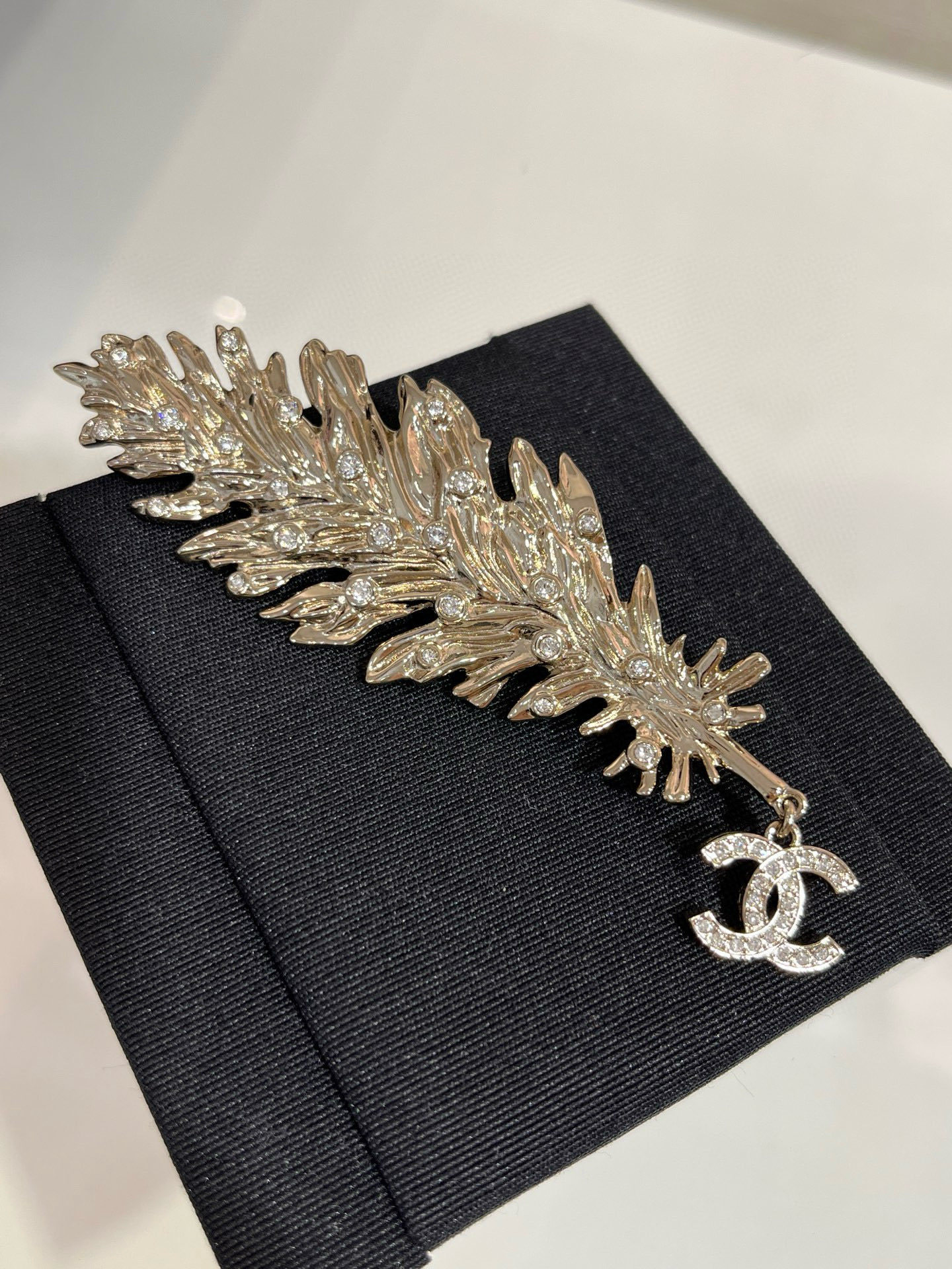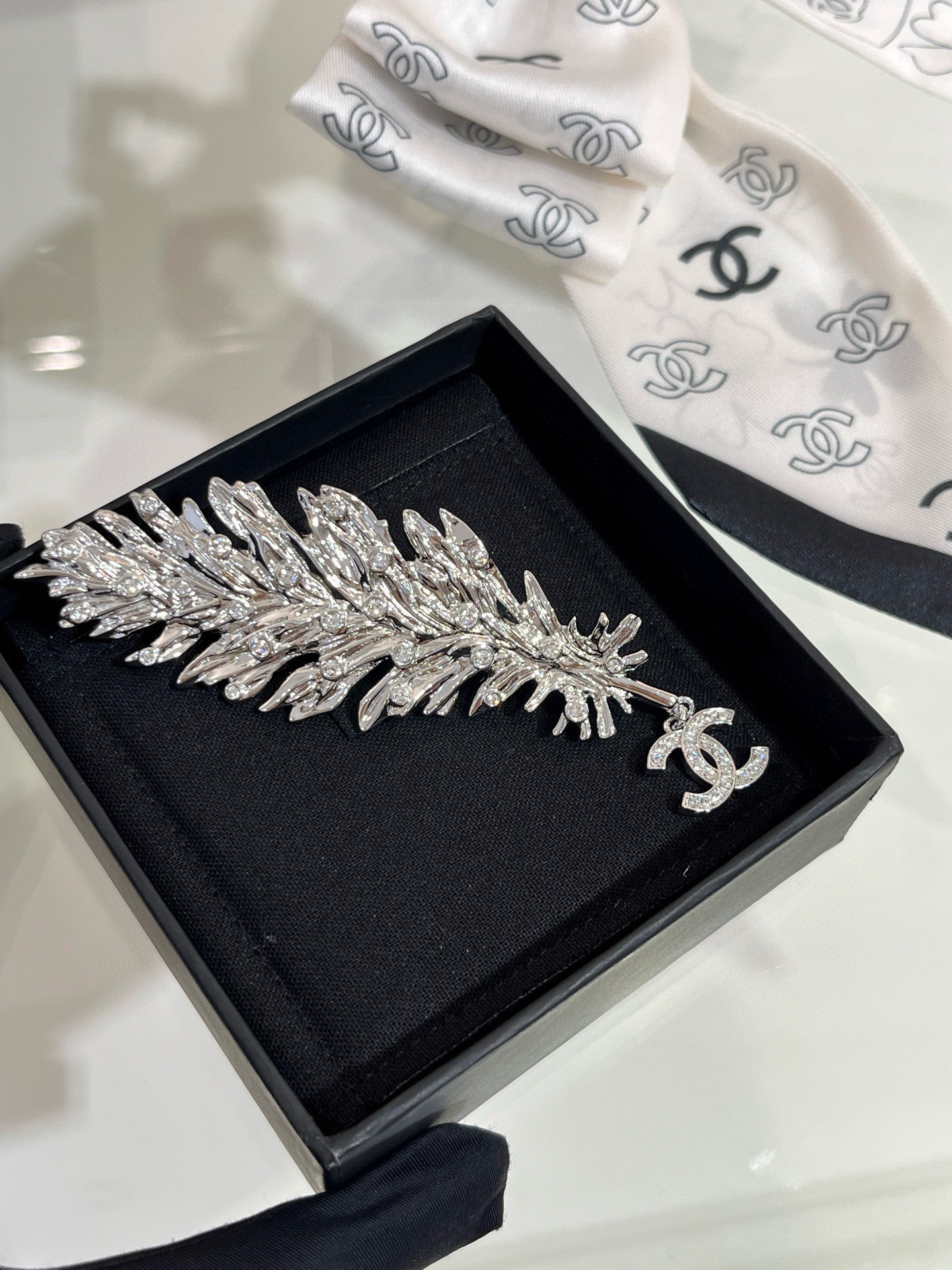 Chan*l's exquisite 25S design features a luxurious double C pendant and feather brooch, meticulously set with brilliant diamonds. The silver version offers a stunning visual impact that instantly commands attention.
