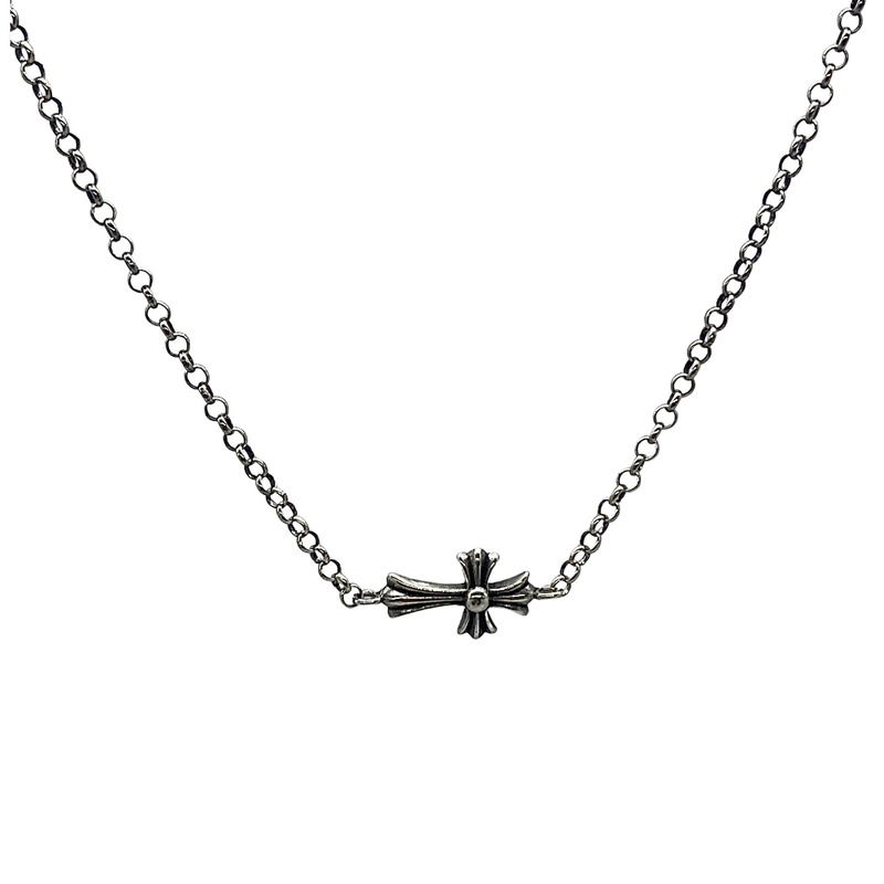 This Chrom* Heart* inspired thin cross pendant necklace is a hot seller among women's jewelry. The silver version offers equally stylish appeal as the sold-out gold-plated version.
